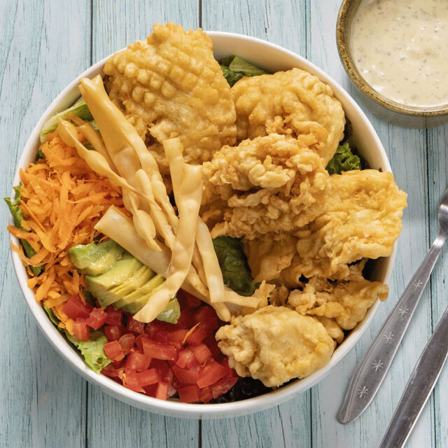 • Ingredients: Una combinación única de pollo crispy, trozos de piña dulce, jamón, lechuga americana y morada, tomates cherry y huevo sancochado. Acompañada de nuestro aliño agridulce.